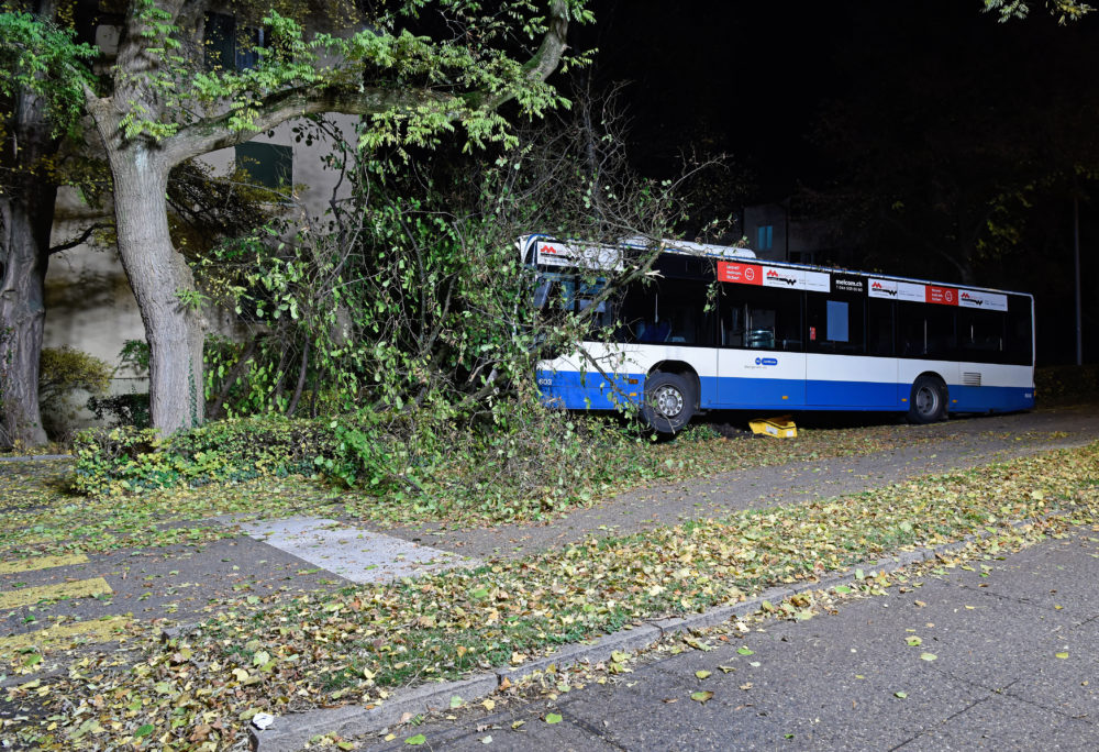 Kurz nach 23.15 Uhr fuhr ein Chauffeur mit einem Bus der Linie 67 auf der Gutstrasse in Richtung Letzigraben. Aus unbekannten Gründen verlor er die Herrschaft über sein Fahrzeug, kam von der Fahrbahn ab und prallte danach Höhe Gutstrasse 116 gegen einen Baum. Durch den Aufprall wurden der Lenker sowie drei Insassen, zwei Frauen und ein Mann im Alter von 25 bis 40 Jahren, leicht verletzt. Sie wurden von der Sanität ins Spital gebracht. Die Unfallursache ist unklar und wird durch den Unfalltechnischen Dienst der Stadtpolizei Zürich abgeklärt. Der Sachschaden beläuft sich auf über 100’000 Franken. Die Gutstrasse war wegen des Unfalls während vier Stunden für jeglichen Verkehr gesperrt.