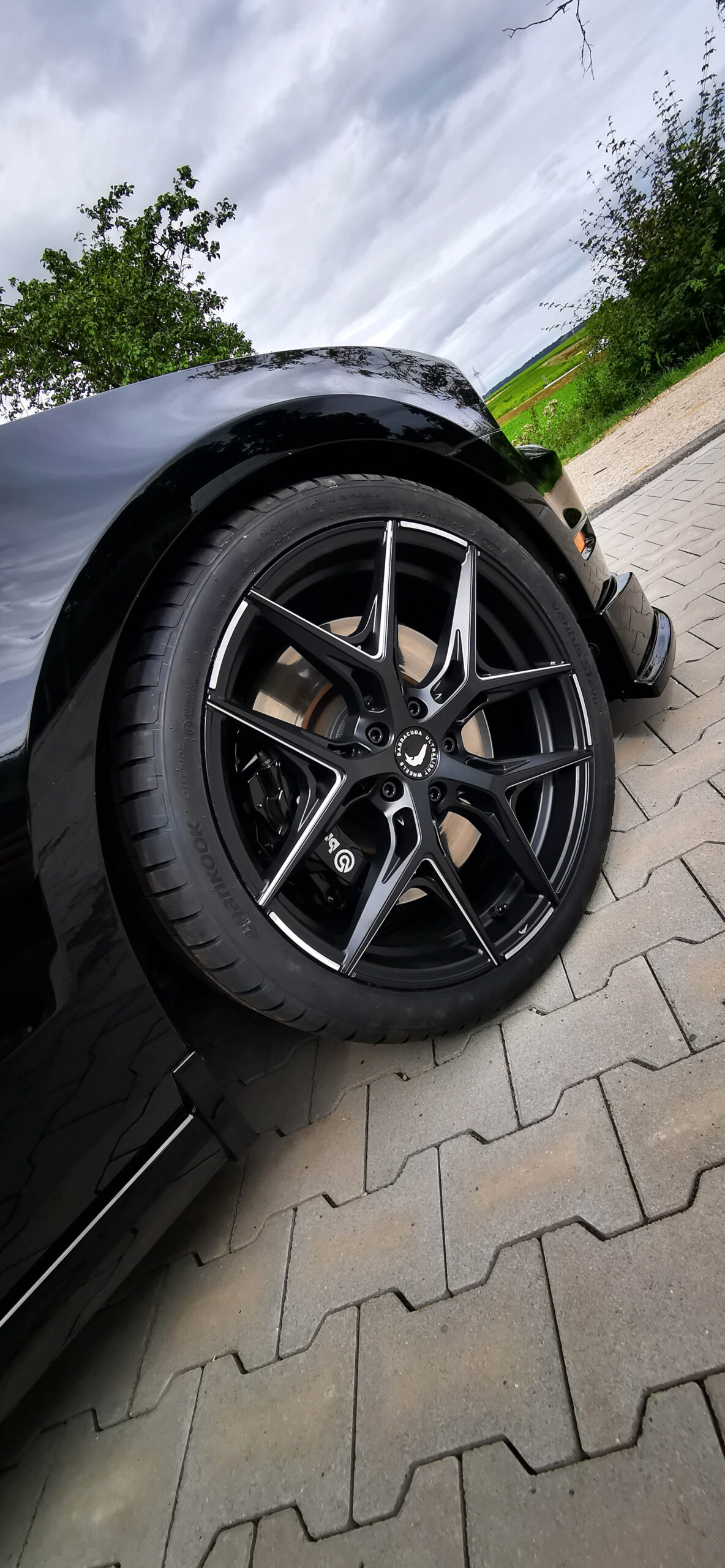 Das US-Coupé steht auf den erst kürzlich eingeführten Razzer-Felgen aus Barracudas Ultralight Series. Die dank der Produktion im Flow Forged-Prozess sehr leichten Räder zeichnen sich durch kraftvolle Y-Speichen-Sterne und gefräste Speichenkanten aus. Vorne sind sie in der 8,5×20 Zoll messenden Concave- und hinten in der 10×20-zölligen Deep Concave-Variante verbaut. Die Hankook-Bereifungen messen 255/35R20 und 285/35R20. Die perfekte Ausrichtung dieser Kombinationen unter den Kotflügeln erwirkt ein KW Variante 2-Gewindefahrwerk.