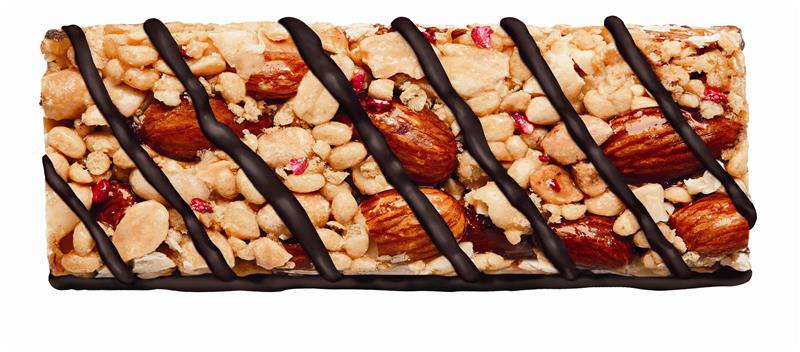 Der neue Snack-Riegel vereint knackige Erdnüsse und Mandeln mit fruchtiger Himbeere und einem zartschmelzenden Boden aus dunkler Schokolade – eine leckere Kombination, die begeistert.