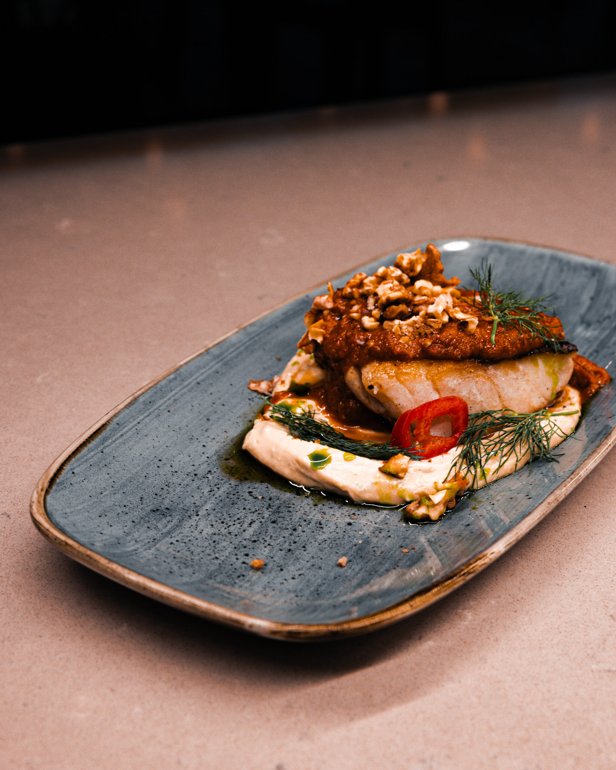 Ob Jakobsmuscheln auf Hummus, frittierte Baby-Oktopusse mit grünem Tahini oder die imposante Meeresfrüchte-Platte mit Hummerschwänzen, Lachsfilet, Kalmar und Garnelen – die Gerichte überraschen mit einer spannenden Kombination aus Frische, Würze und Textur.