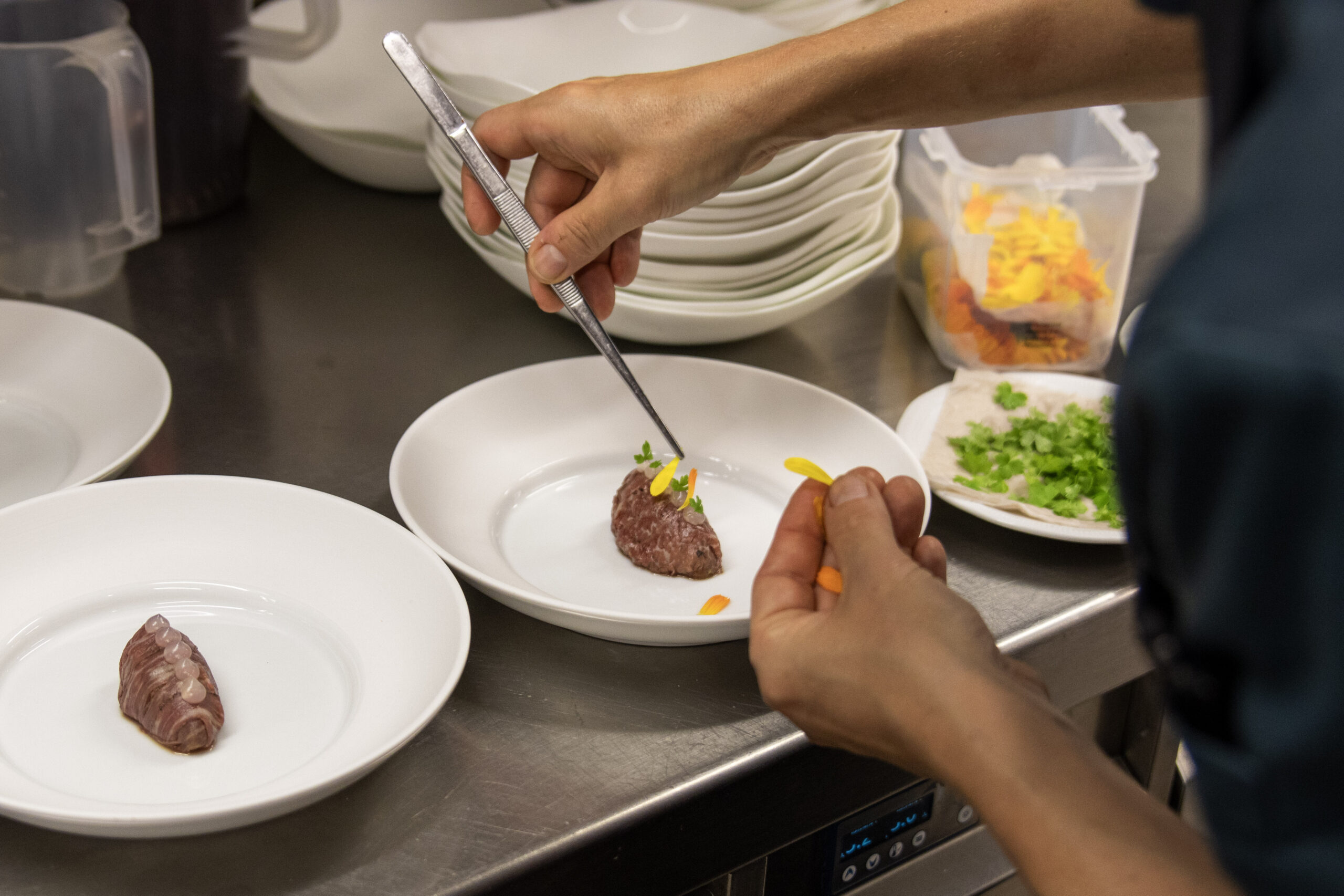 Der Chef’s Table führt die Gäste mitten hinein in die Welt der Sterneküche: unmittelbar an die Schnittstelle zwischen Küche und Service, wo jedes Detail zusammenkommt. Hier sitzen die Teilnehmer in nächster Nähe zum Küchenteam und können beobachten, wie die Gerichte entstehen, wie die Köche Hand in Hand arbeiten und wie aus einzelnen Zutaten präzise Kompositionen werden. So wird Spitzengastronomie hautnah erlebbar – ein Blick hinter die Kulissen, der normalerweise den Profis in der Küche vorbehalten ist.