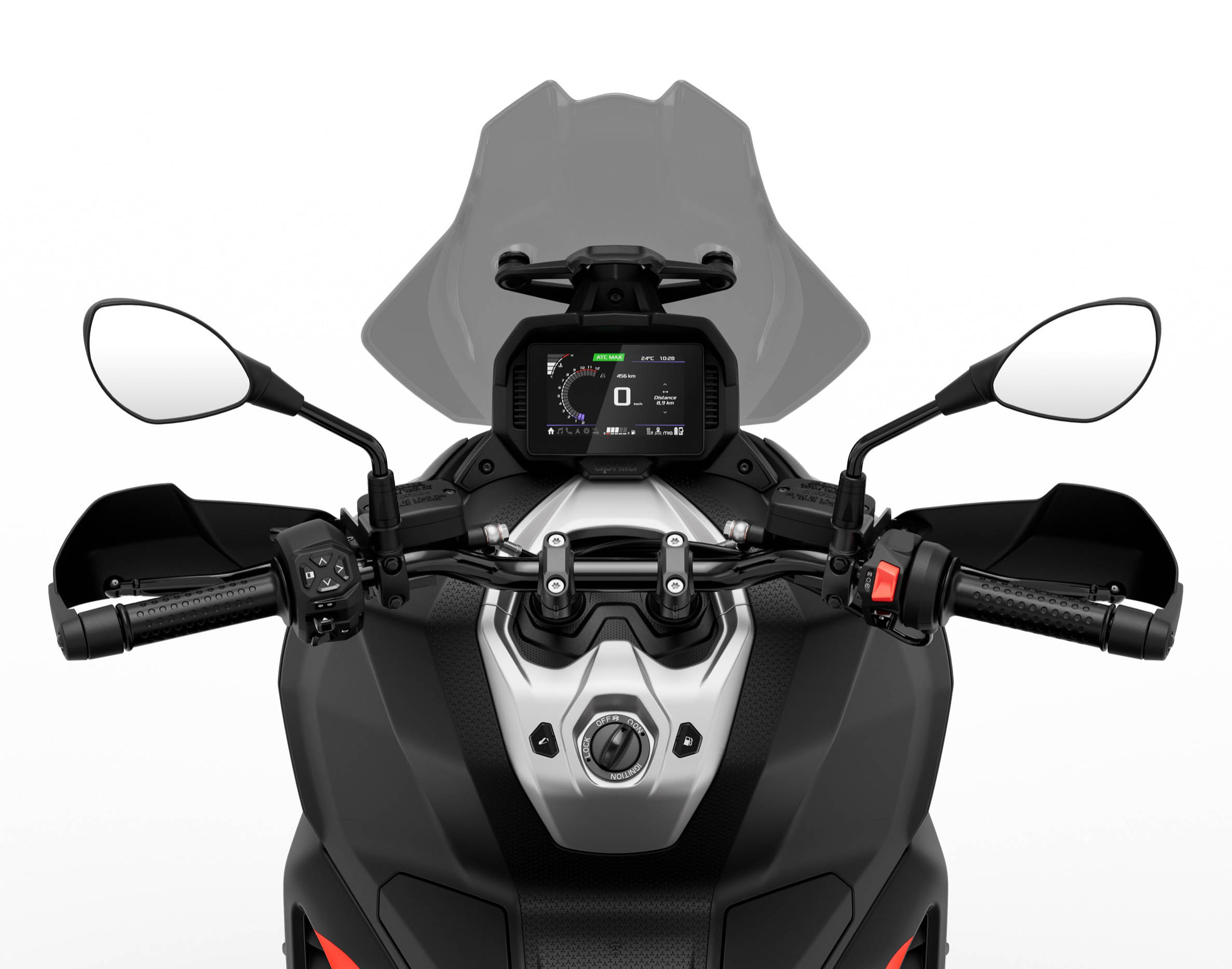 Das 5-Zoll-TFT-Farbdisplay bietet eine klare, moderne Darstellung aller wichtigen Informationen und passt sich automatisch an die Lichtverhältnisse an. Über das Multimedia-System Aprilia MIA lässt sich das Smartphone verbinden – für Navigation, Musik oder Anrufe direkt über die Lenkersteuerung. Ein integrierter Sprachassistent erleichtert die Bedienung während der Fahrt.