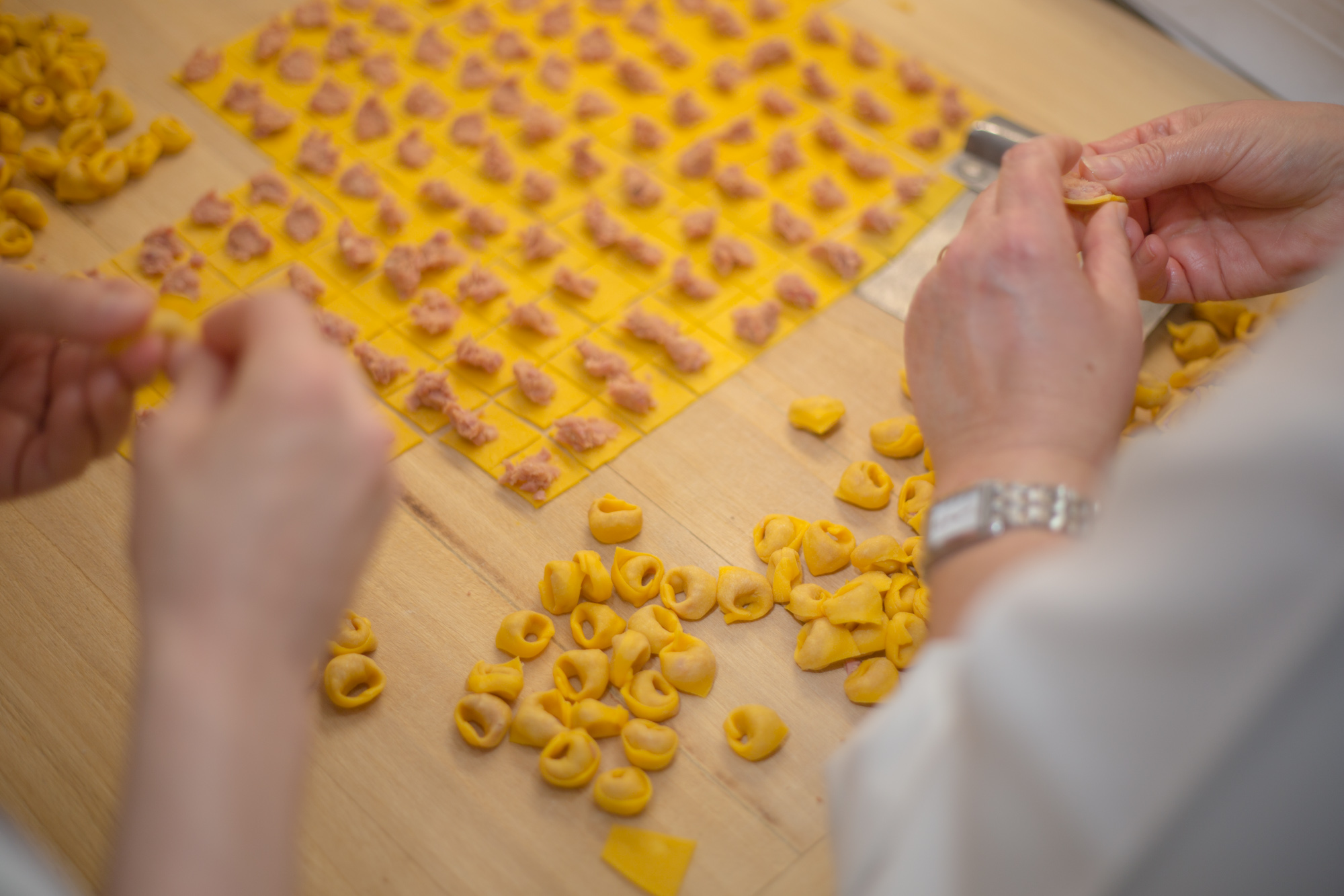 Ein Weihnachtsmenü ohne Pasta ist undenkbar, und da in Italien die Pasta üblicherweise als „primo piatto“ (übersetzt: erster Gang) gereicht wird, startet das Menü mit typischen und sehr bekannten Pasta-Variationen aus der Emilia-Romagna. Zu den beliebtesten Gerichten in der Weihnachtszeit gehören zweifellos die Tortellini, die für Bologna und Modena typischen, mit Fleisch gefüllten Eiernudeln, die meist in Brühe („in brodo“) serviert werden. Als vegetarischer Gang serviert gibt es die traditionellen Tortelloni beispielsweise auch mit einer Kürbis- oder Ricotta-Spinatfüllung.