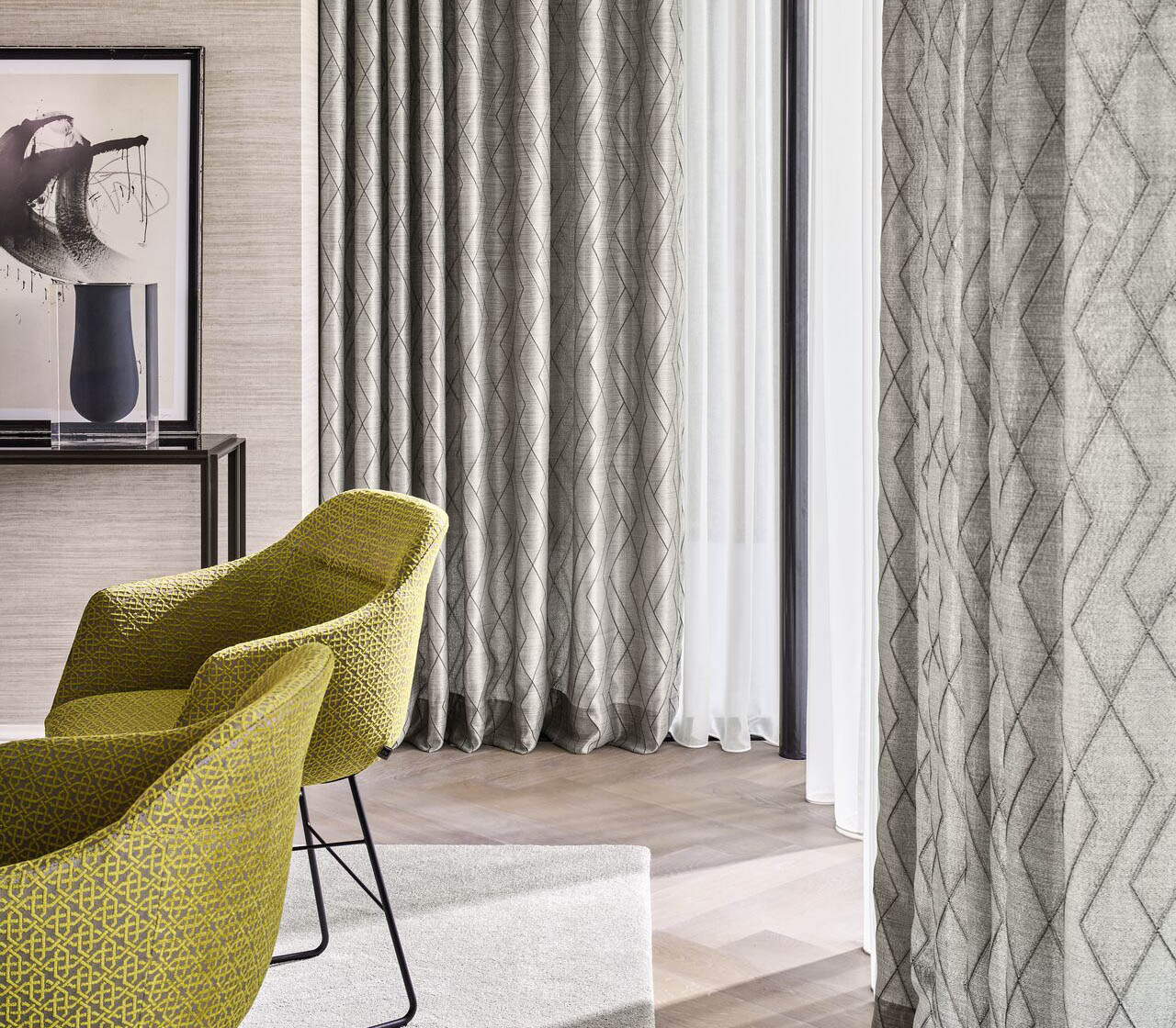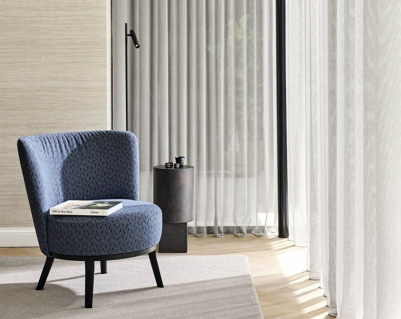 Die Dekorations- und Transparentstoffe in doppelter Breite bieten grosszügige Lösungen für Fenster und Raumgliederung. Die Bezugsstoffe überzeugen mit hoher Strapazierfähigkeit und überraschend weicher Haptik. Praktisch: Sämtliche Qualitäten sind schwer entflammbar und bei 30 °C waschbar. Die ausgesuchten Dessins und Texturen machen die Kollektion gestalterisch vielseitig und zeitlos.