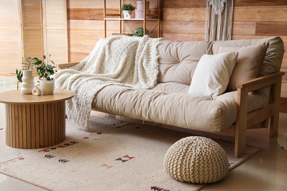 Materialien erzählen dem Auge, ob ein Raum „warm“ oder „kalt“ ist. Holz mit sichtbarer Maserung wirkt fast immer einladend, besonders Eiche, Nussbaum oder auch Rattan. Texturen wie Filz, Bouclé, Kord oder Strick bringen Volumen, selbst in neutralen Farben.