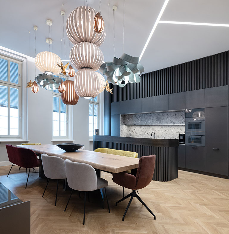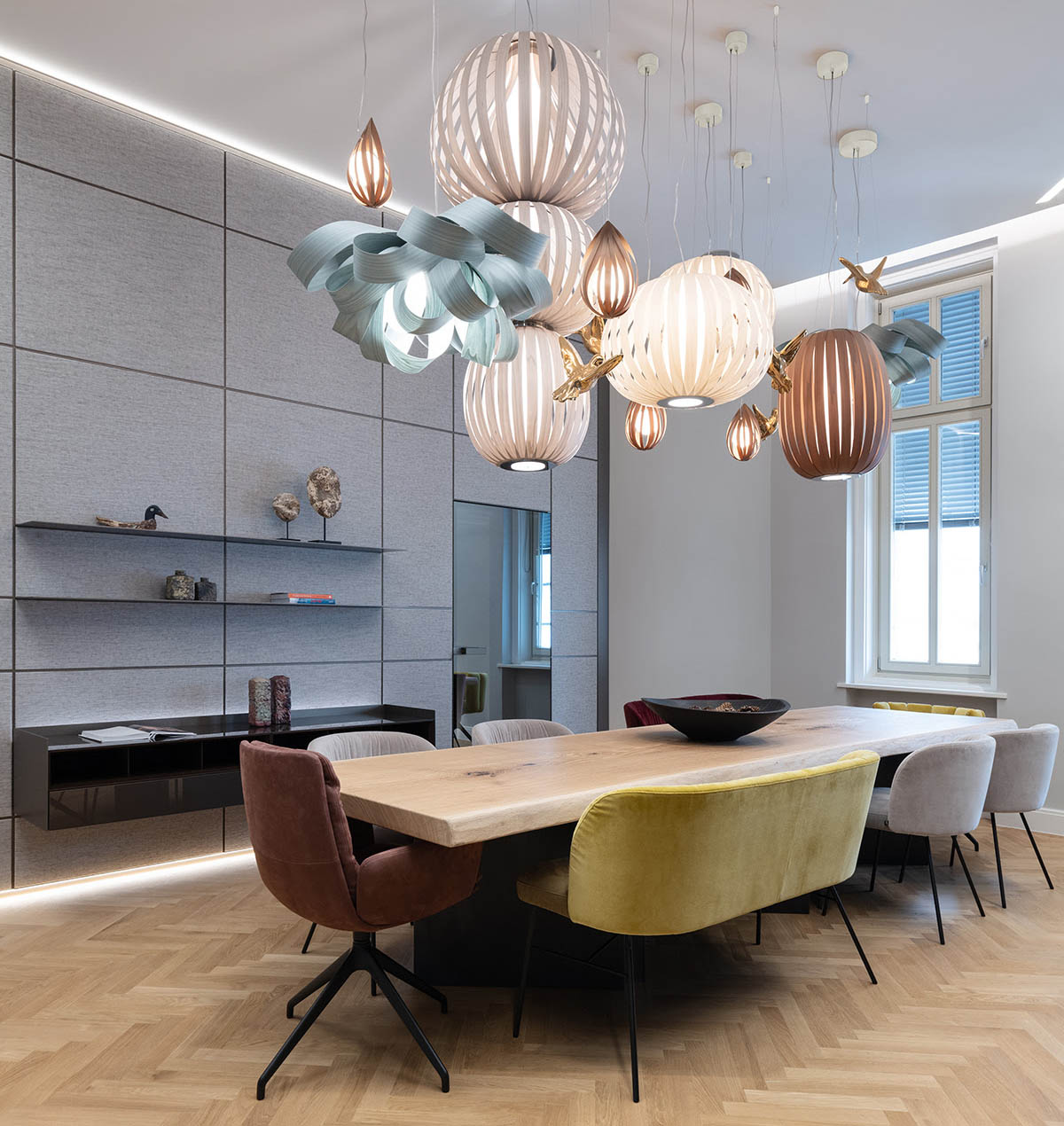 Im Herzen Wiens steht dieser massgefertigte Leuchter nicht nur als visuelles Highlight, sondern als Sinnbild dessen, was Design werden kann, wenn es aufmerksam zuhört: ein Rückzugsort für Individualität, eine Hommage an das Handwerk und eine Feier der leisen Kraft des Lichts.